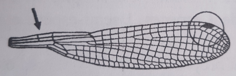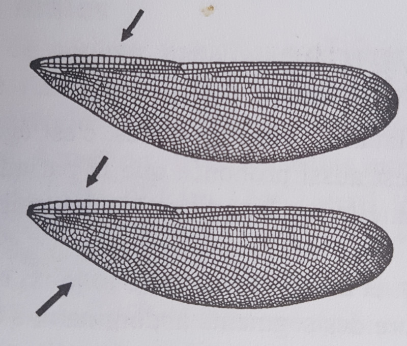 Bord antérieur de la base des ailes avec seulement deux nervures transverses antenodales (fig 1.). Ailes toujours transparentes